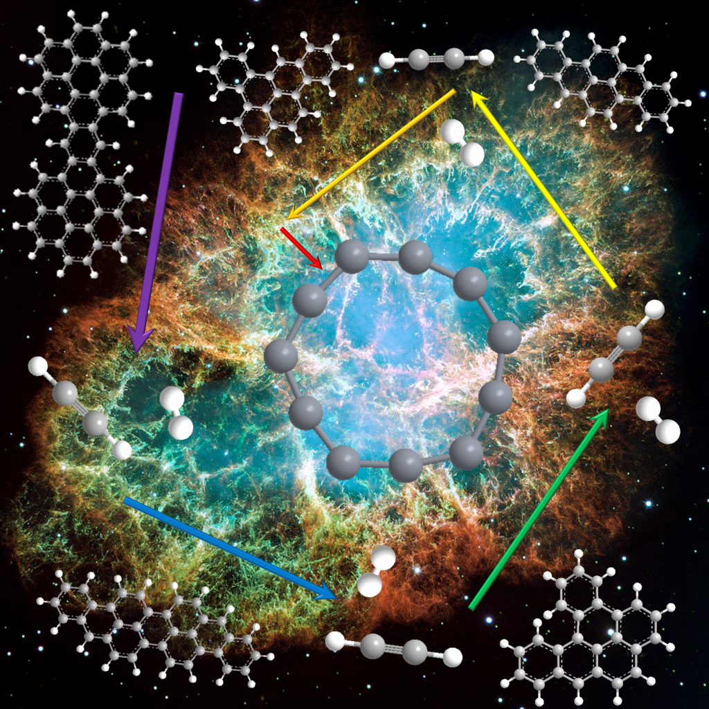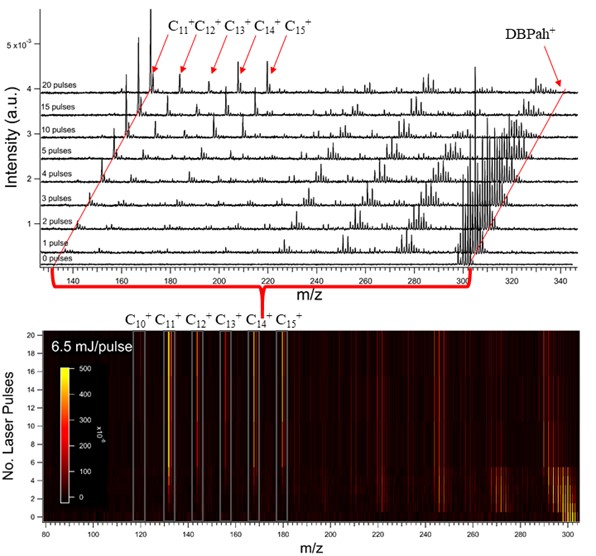Shockingly, they exhibited the same magic-number carbon clusters, and in very similar branching ratios as the dibenzopyrenes! Furthermore, these carbon clusters are formed very early on in the dissociation process. Classically it has been shown that when PAHs break apart, they tend to favor losses of H atoms, H2 molecules and C2H2 or C2 molecular moieties. Here, it seemed that these carbon clusters were being formed in direct competition with the C2H2 & H/H2 losses. This is quite interesting because if all PAHs, regardless of size and symmetry, favor similar fragmentation products (these carbon clusters), then surely, they could be found in the same regions in space where PAHs are formed. Which is basically everywhere.