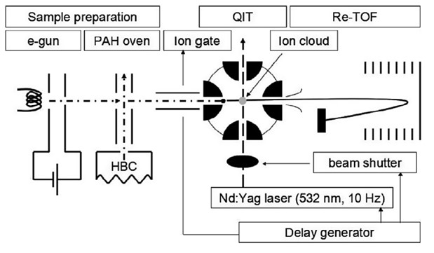 Before going on that tour, I had been struggling with my experimental apparatus, the instrument for photodynamics of PAHs (or i-PoP, see below). This experiment was the first step in my ambitious plans for my Marie Curie fellowship. When it works, PAHs are sublimated in a small oven and the gaseous PAHs are ionized with an electron gun. The ionized PAHs, or PAH cations, are transported into a quadrupole ion trap where the ions are compressed into an ion cloud thanks to the quadrupoles and a He buffer gas. The contents of the trap are then irradiated with a laser and the resulting fragments are analyzed with a mass spectrometer, so experiment spits out series of mass spectra. There are a myriad of different things that need to be tweaked and/or kept stable so that the results can be compared to understand the influence of increased laser exposure, increased laser power, the laser wavelength, etc.