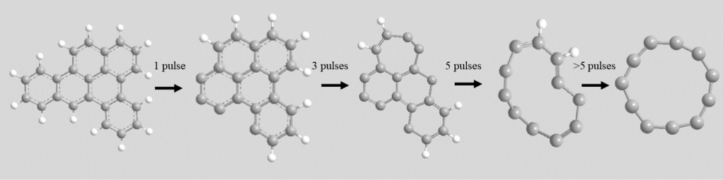 This is a hard question. I image that when PAHs absorb photon energy, the dissociation process is not very clear-cut. It is more dynamic and chaotic than a simple fragment being broken off and then rest of the energy radiated away through fluorescence or intramolecular vibrational redistribution (IVR). I believe that what we saw in the experiment is pointing towards a multiplexed and incredibly complicated potential energy diagram of a big molecule where aromatic bond ruptures are fairly frequent. This would open up the PAH carbon skeleton and quite easily allow the formation of carbon rings. To verify this hypothesis will require an enormous amount of quantum chemical computations, however. Hopefully, some might be interested in this project.